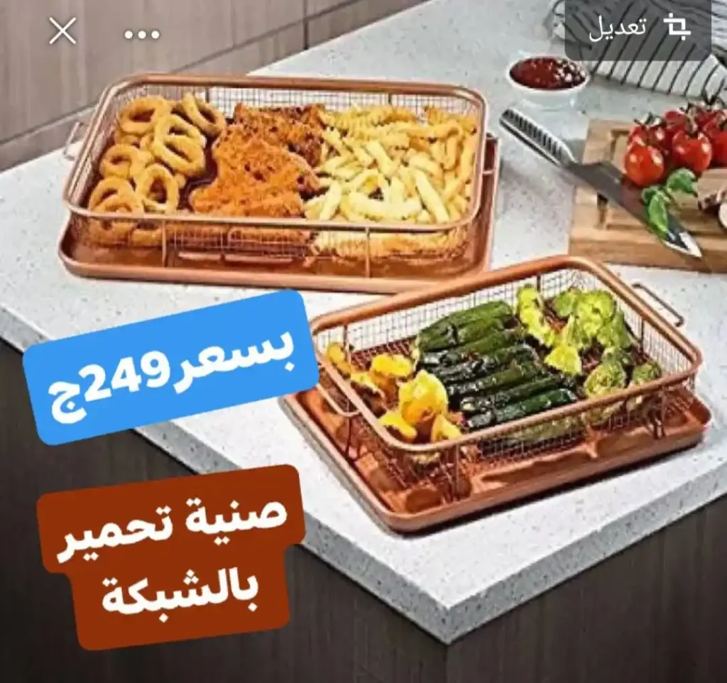 مقلاة واسعة بتوزيع متساوي للحرارة، مثالية لتسوية الخضار والمكرونات والبطاطس المقرمشة بدون زيت.