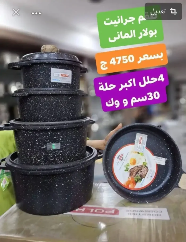 العروض تشمل أطقم طواجن، حلل جرانيت، لبانات، صواني، ومعالق ستانلس، كلها بجودة عالية وأسعار أقل من أي مكان آخر.